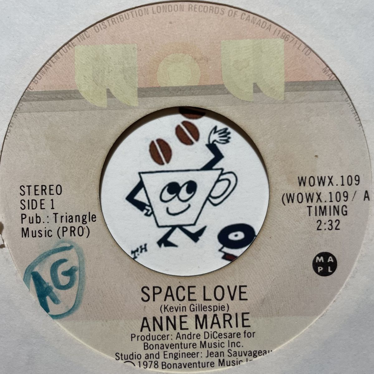 CANADAディスコPOPSシンガーANNE MARIEの1978年WOWレーベルリリースSEVEN INCシングルSPACE LOVE。ANNE MARIEのお洒落FRENCHディスコPOPS傑作PRENDS TON TEMPSがお値段以上の満足感で大好きなのですが、コチラはそのイメージもお値段も一旦忘れてお試し頂きたいセクスィCOSMIC SYNTHディスコ大傑作!!!エレクトロでNEW-WAVEでちょいエロでSPACYと来たらもう殿方はシンボウたまらんでしょゥ!!!!!彼女の音源中、世界が認める唯一のRAREシングルです。