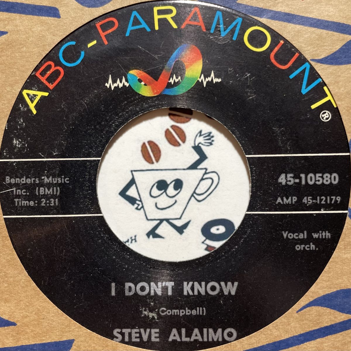 US POPS歌手エンターティナー、VISIONレーベルオーナーSTEVE ALAIMOの1964年ABCレーベルリリースSEVEN INCシングルI DONT KNOW。聴いた瞬間にコレは踊れるを判断せざるを得ないご機嫌極まりないフロア専用メリケンSKA!!!!!カップリング曲にC.MAYFIELD作THATS WHAT LOVE WILL DOカバーを収録した文句なしの逸品でございますから、既にまともな盤は市場から消えつつあります。取り合えず今回入荷の美品に飛び付いておけばもう安心ですねッ!!!!
