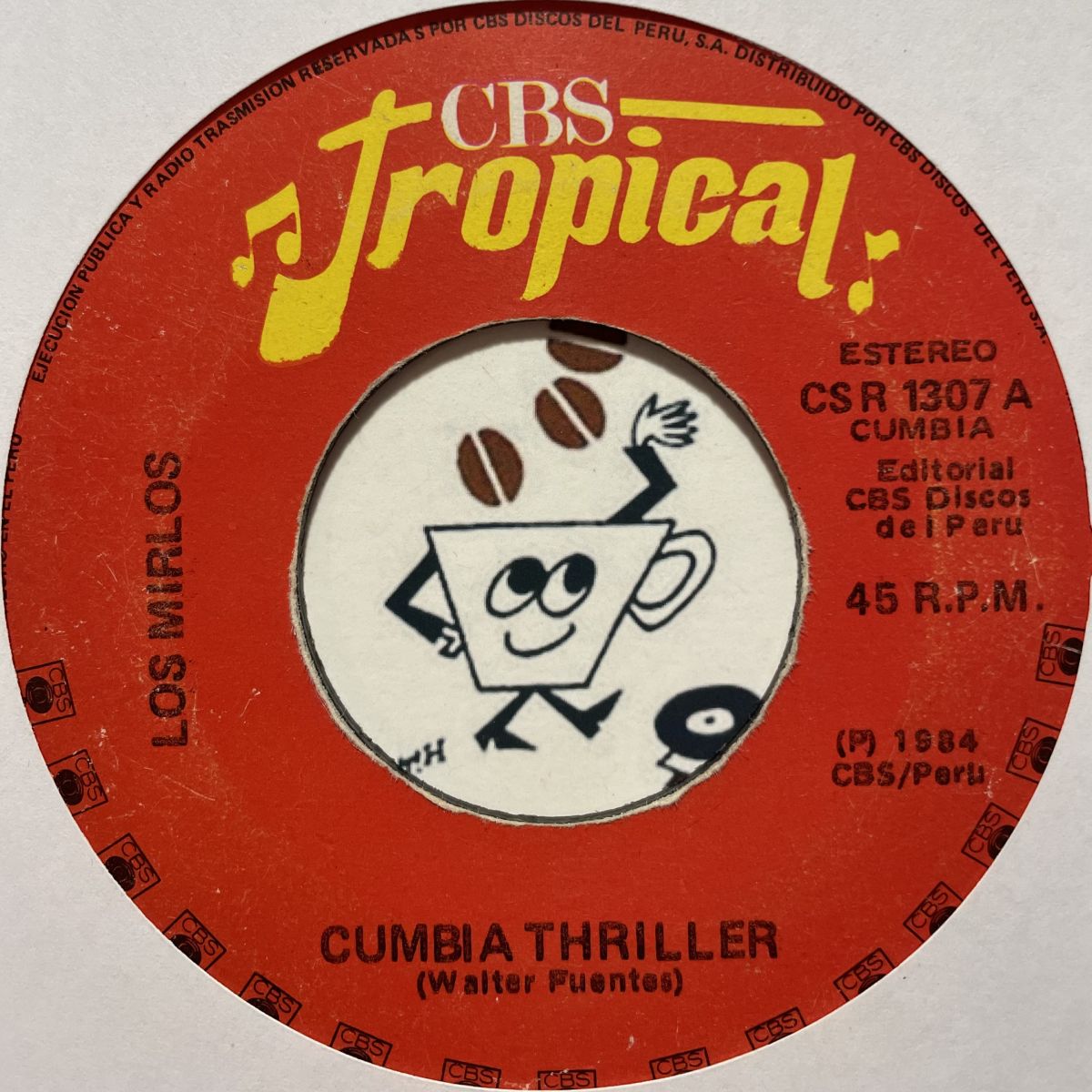 サイケってキーワードがピッタリな南米ペールのLATIN-CHICHAバンドLOS MIRLOSの1984年アルバムCUMBIA THRILLERからタイトル曲を抜粋した同年CBS TROPICALレーベルリリースSEVEN INCシングル盤。聴けば納得のこのイントロは勿論マイコーのスリラーだねッ!!!カバーとは言い難い自由奔放なアレンジがあえて◎で、オーパスでは勿論2026年も引き続きお引き立ての激プッシュ筆頭タイトルでございます!!!!!更にカプリングに現在進行形US LATINユニットCHICHA LIBREファンも納得せざるを得ないテロテロ四重奏CHICHAトラックの最高傑作FIESTA EN LA SELVAを収録した珍品ダブルサイダーでございます。