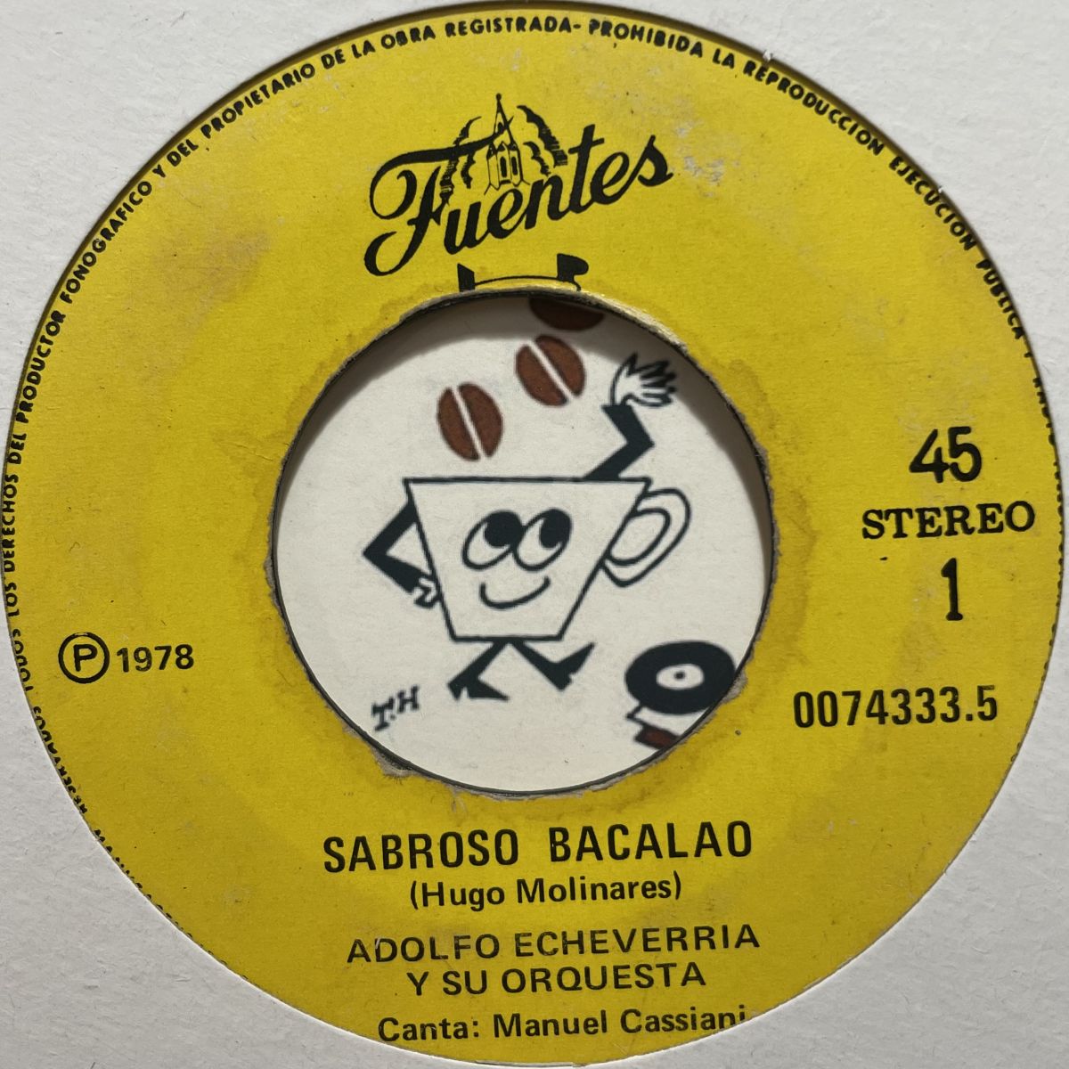 コロンビア出身のバンマス作曲家ADOLFO ECHEVERRIAが指揮を操ったLATINオーケストラの1977年傑作アルバムからタイトル曲を抜粋した翌78年FUENTESレーベルリリースSEVEN INCシングルSABROSO BACALAO。彼名義だとLA ESCOBAやCUMBIA EN LLAMASがワタクシの大好物でございますが試聴の通りコチラは別格、圧倒的な別次元!!!HARD-SALSA GUAGUANCO愛好家の皆さまは勿論ですが筋金入りヴィンテージCUMBIAファンもスルー厳禁でお願い致します!!!2021年に再発済みですがオリジナルに拘りたい衝動こそが男のロマンです。