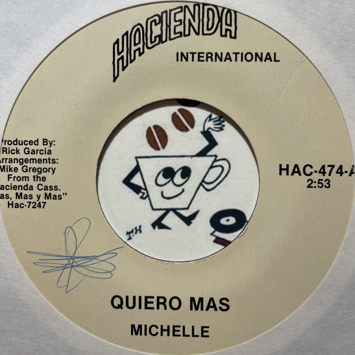 メキシコLATIN-POPS歌レーベルリリース手MICHELLEの90S HACIENDAレーベルリリースSEVEN INCシングルBAILA LA CHA-CHA。歳がバレますがSUNNY DAYのMAHOUの如くキラッキラのイントロでCLUB OVER-AGE枠の紳士淑女を一撃で夢中にさせるQUERO MASカバー、和モノだと言われればそうだと誰もが納得しちゃうランバダ系LATIN歌謡祭BAILA LA CHA-CHA共に即本番可ッ!!!!!