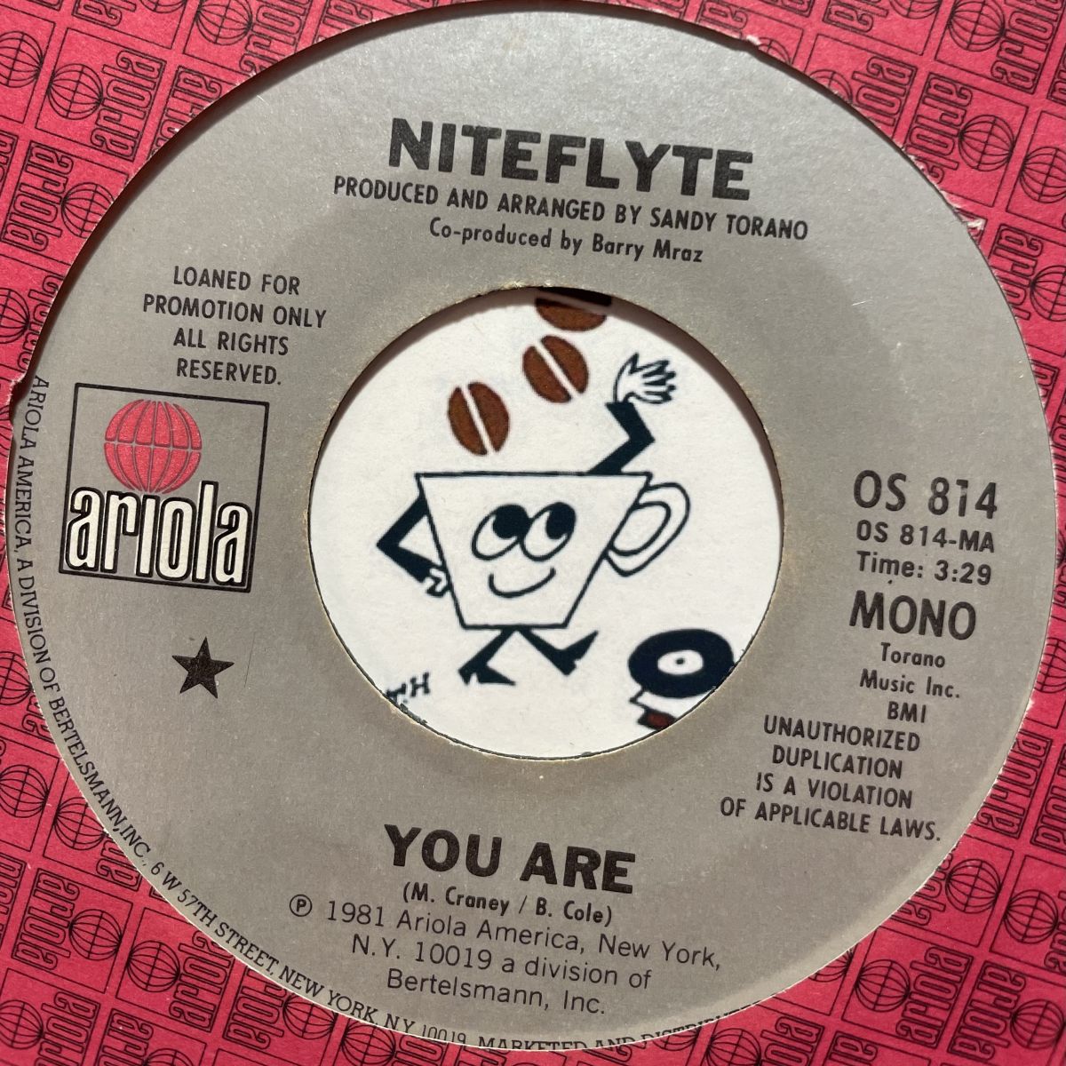 US AORバンドNITEFLYTEの1981年アルバムからアルバムハイライトYOU AREを抜粋したARIOLAレーベルSEVEN INCシングル盤。いやァ~青春の逸曲といいますか色褪せない名曲、いつ聴いてもグッと来る爽快なアーバンメロウチューンですねッ!!!今年も程々にがんばりましょう!!!!!オマエもがんばれよッ