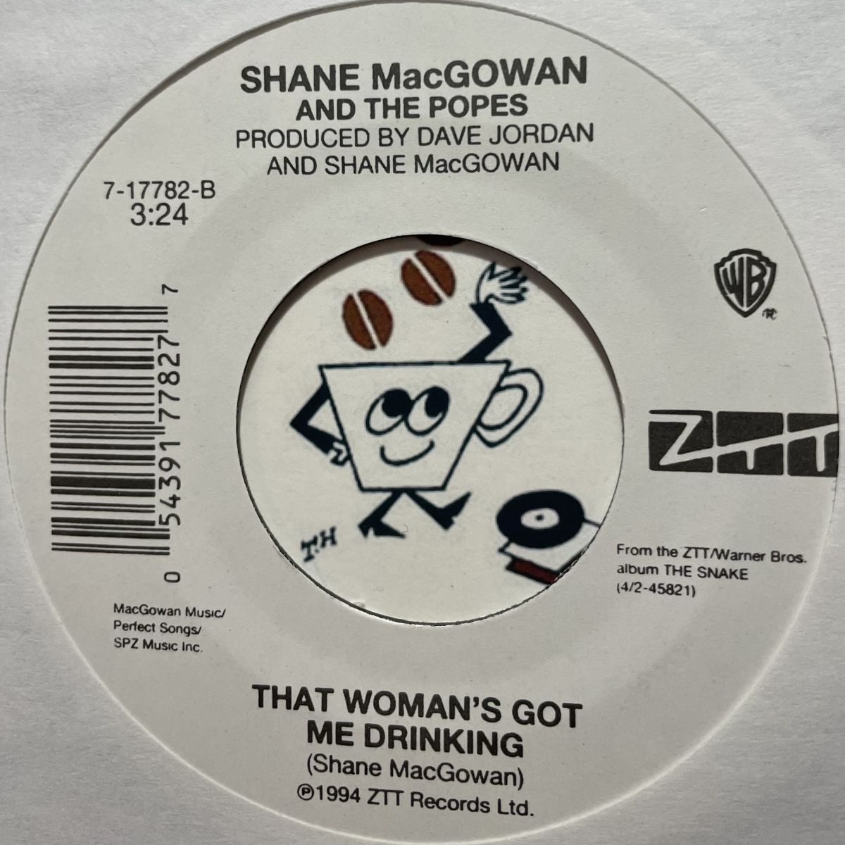 POGUESリーダーSHANE MACGOWANがリストラ後に結成したSHANE MACGOWAN AND THE POPESの1995年ZTTレーベルプロモSEVEN INCシングルNANCY WHISKEY。UKトラッドNANCY WHISKEY、カップリング曲THAT WOMANS GOT ME DRINKING共に令和のフロアでモテる男のマストITEMでございましょうッ!!!