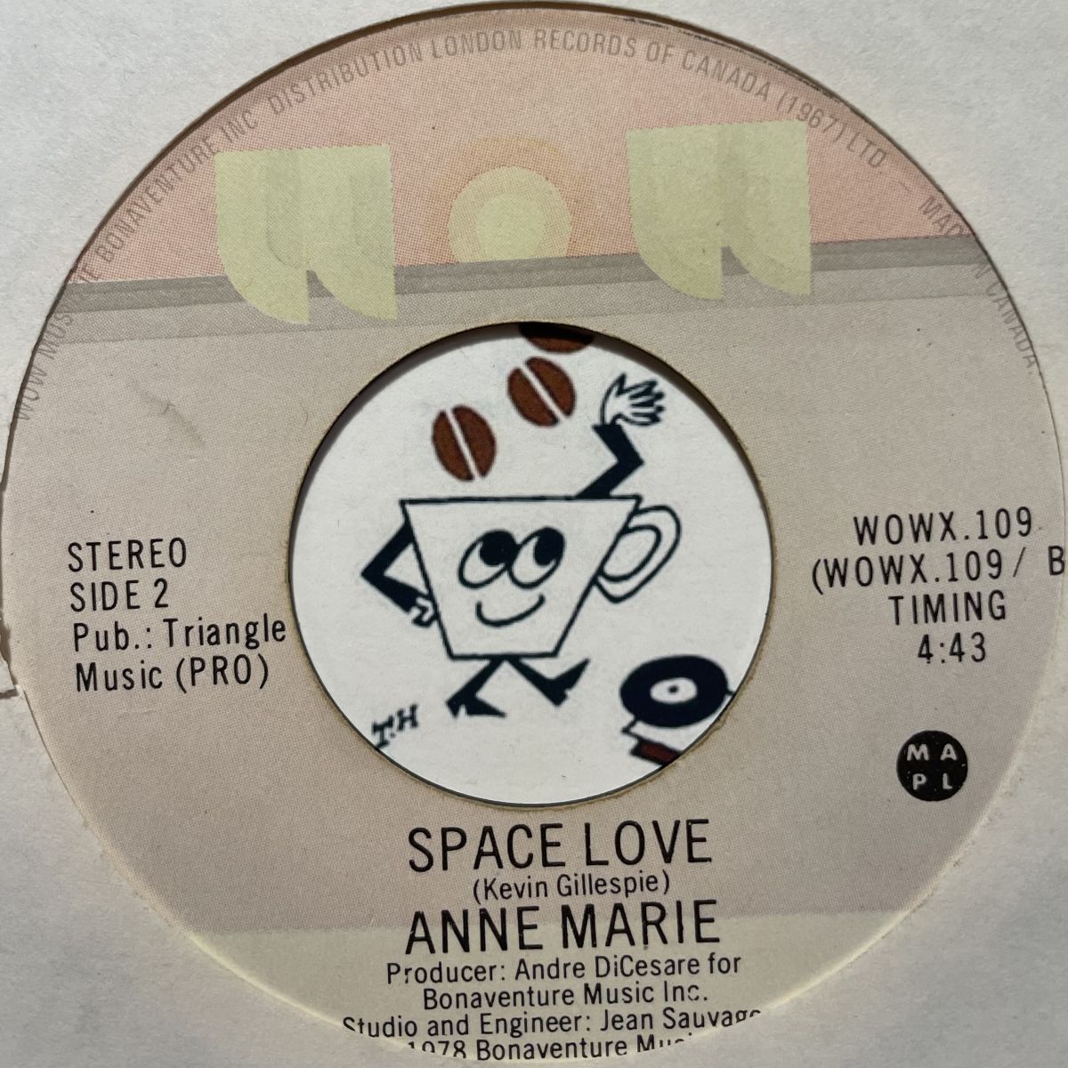 CANADAディスコPOPSシンガーANNE MARIEの1978年WOWレーベルリリースSEVEN INCシングルSPACE LOVE。ANNE MARIEのお洒落FRENCHディスコPOPS傑作PRENDS TON TEMPSがお値段以上の満足感で大好きなのですが、コチラはそのイメージもお値段も一旦忘れてお試し頂きたいセクスィCOSMIC SYNTHディスコ大傑作!!!エレクトロでNEW-WAVEでちょいエロでSPACYと来たらもう殿方はシンボウたまらんでしょゥ!!!!!彼女の音源中、世界が認める唯一のRAREシングルで、その魅力は中盤からのスペシャルご奉仕な展開に全て凝縮されております。抱かれる抱かれないの判断は最後迄聴いてからよッ